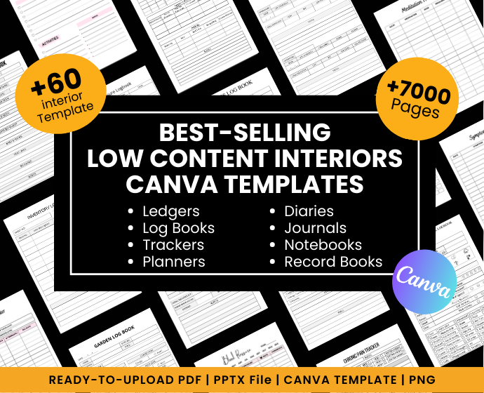 We've dedicated countless hours to crafting over 600 unique, Editable Canva templates, encompassing more 0ver 60 High Profitable Low Content Book. These templates are designed with precision, ensuring that every page meets the high standards required for successful self-publishing. By leveraging our expertise and effort, you can save time and focus on what you do best – creating and marketing your books.