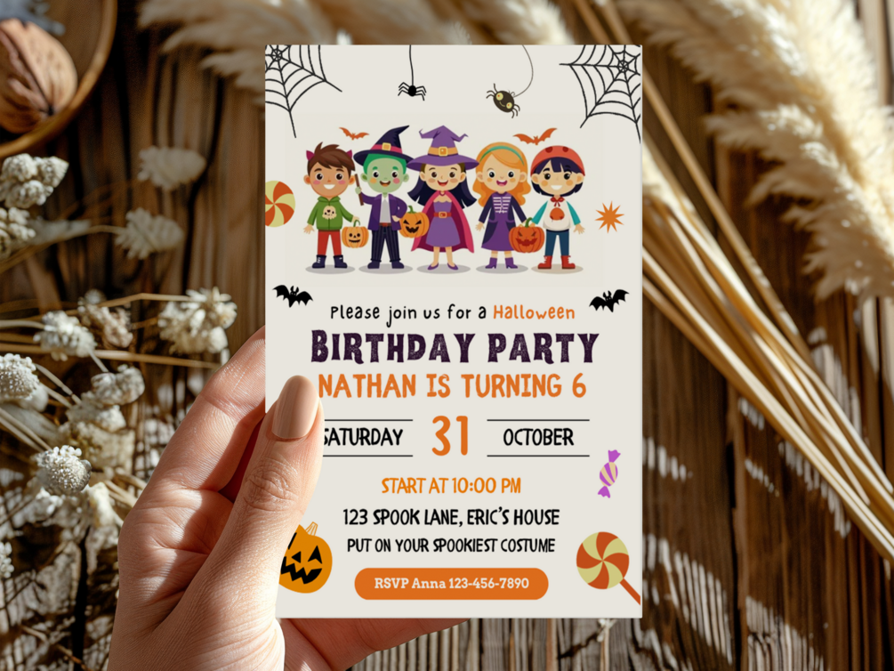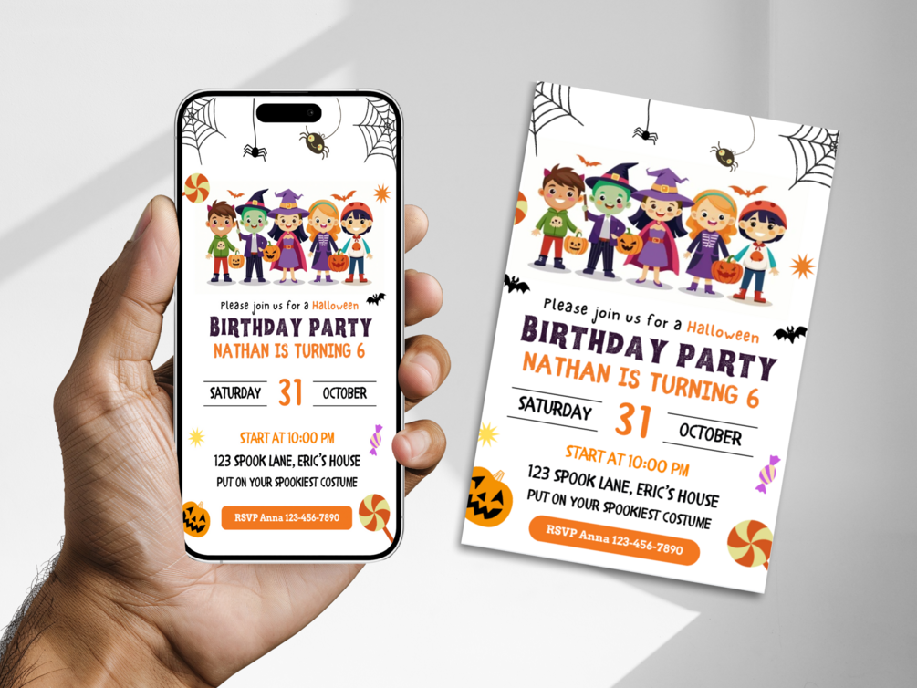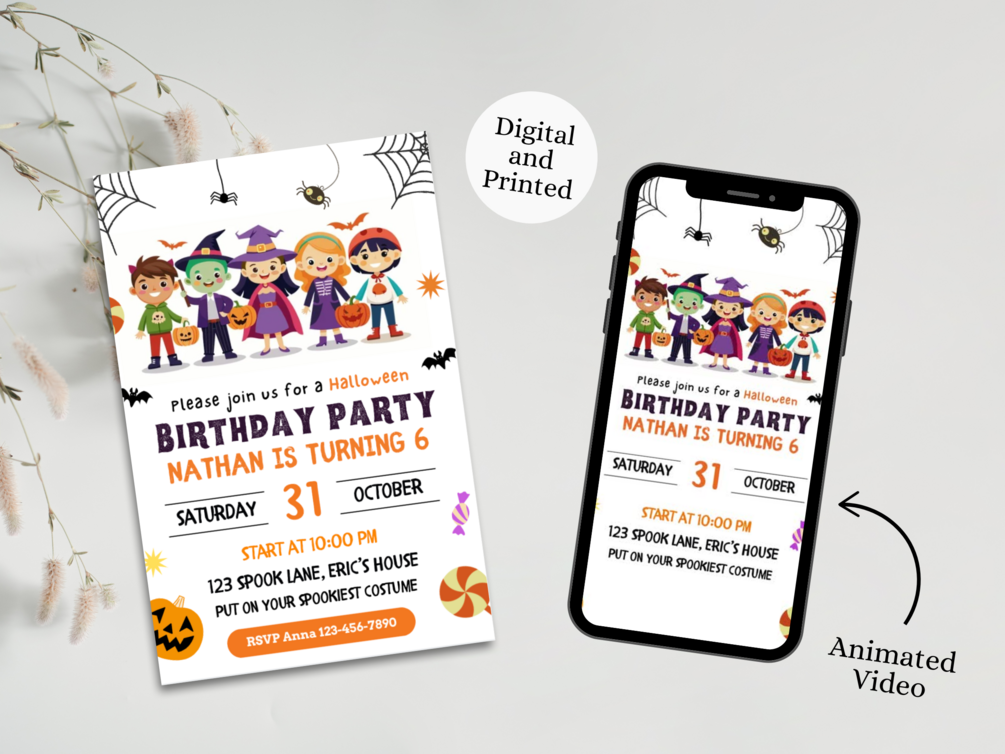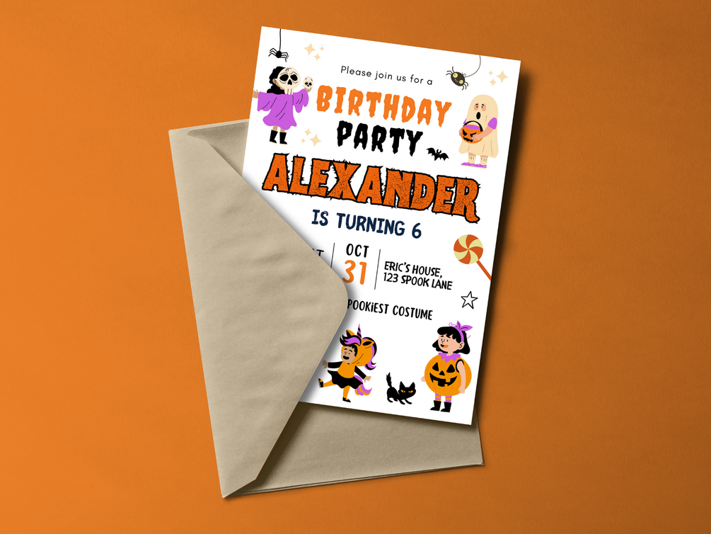 Get ready for a hauntingly fun Halloween with our Editable Halloween Birthday Party Invitation! Our Edition is perfect for setting the spooky yet charming tone for your Halloween Birthday party. With unique, spooky and halloween-themed design, your guests will love receiving this one-of-a-kind invitation.