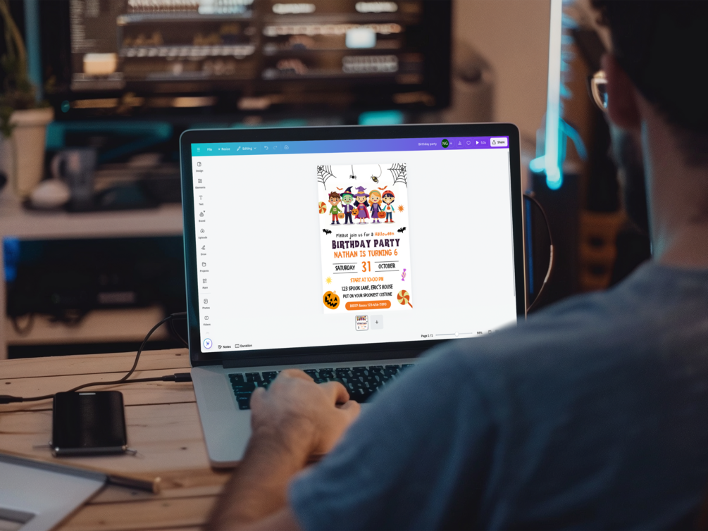 Halloween Birthday Party Invitations - 3 Editable Canva Templates